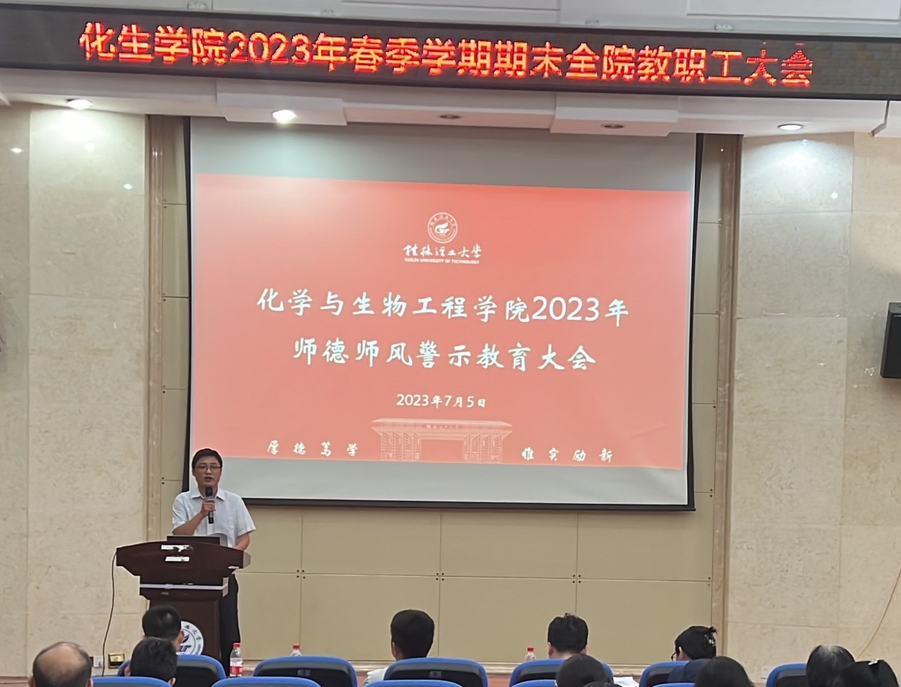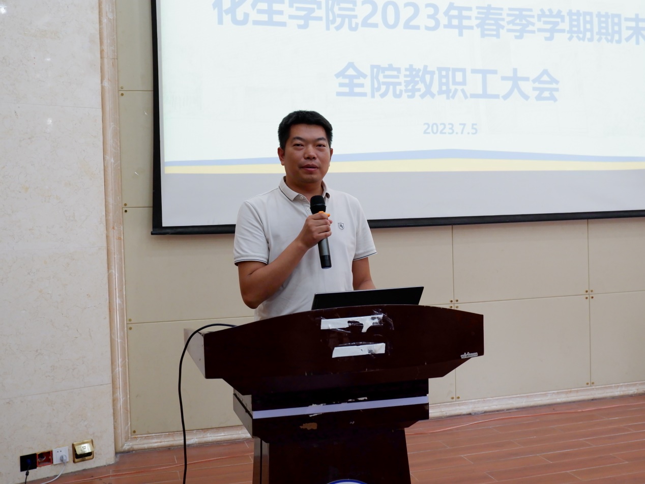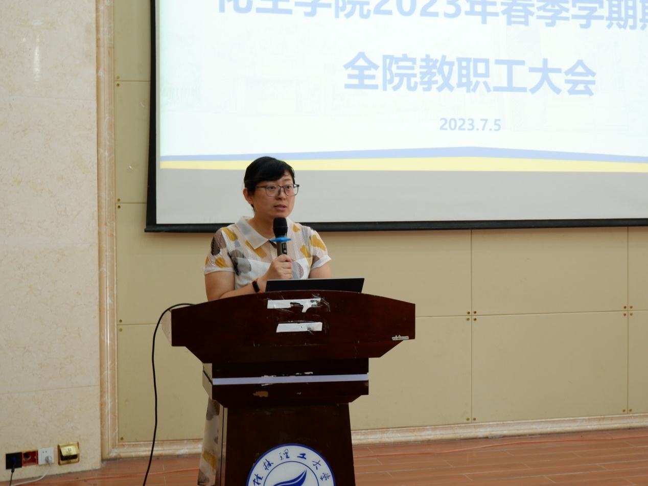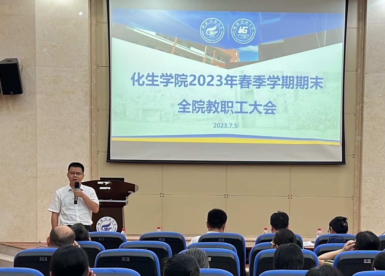导航痕迹 当前位置: 首页 >> 新闻资讯 >> 学院新闻 >> 正文 beats365(中国区)-唯一官方网站召开2023年春季学期期末全院教职工大会 作者:刘耀明 发布日期:2023-07-05 浏览次数: 2023年7月5日上午,beats365(中国区)-唯一官方网站在雁山校区萃华楼报告厅召开2023年春季学期期末全院教职工大会,学院全体教职工参加。会议由学院院长匡小军主持。 会上,学院各分管领导分别就所分管领域的上半年工作进行了总结,并就下半年的工作进行了布置。 匡小军院长就上半年博士点建设和人才引进等重点工作取得的进展情况进行了介绍,并对下半年的重点工作进行了部署,希望学院全体教师共同努力,圆满完成年度工作目标。 彭代江书记作了总结讲话。他对全体教职工在上半年工作中取得的成绩感到高兴,对所付出的辛苦努力表示衷心的感谢,同时希望大家要为做好下半年的工作继续努力奋斗。他强调,在暑假期间要守好学院安全底线,重点做好暑假期间的学生管理、实验室安全、防溺水、外出交通安全、防范电信网络诈骗、意识形态等方面工作;要充分利用好暑假宝贵时间,在实验室建设、博士点建设、科学研究、项目合作等方面多做工作,加强学院内涵式建设,为推动学院高质量发展做出新的更大贡献。 彭代江书记讲话 匡小军院长讲话 李少华副书记讲话 刘勇平副院长讲话 李霞副院长讲话 何方副院长讲话 上一条:beats365(中国区)-唯一官方网站组织开展“师德大讲堂”2023年(第1期)学习活动 下一条:英国贝尔法斯特女王大学黄美兰博士应邀到beats365(中国区)-唯一官方网站作学术报告