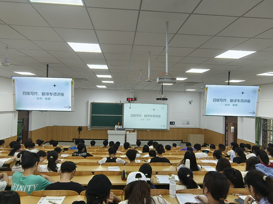 导航痕迹 当前位置: 首页 >> 新闻资讯 >> 学院新闻 >> 正文 【化生青语】学院举办“化生青语”系列活动第七讲——四级写作、翻译专项讲座 作者:朱皓 发布日期:2024-06-06 浏览次数: 为激发学生的英语学习热情,提高学生的英语翻译和写作能力,6月5日晚,化学与生物工程学院在05307教室举办了“四级写作、翻译专项讲座”。此次讲座由外国语学院资深教师莫娜主讲,学院150余名本科生聆听了讲座。 讲座伊始,莫娜以饱满的热情和专业的态度,向学生们介绍了大学英语四级考试翻译、写作两大题型的特点及重要性。她强调,这两项技能不仅是英语学习的核心内容,更是未来职场中不可或缺的能力。接着,莫娜对翻译和写作题型进行了深入剖析。在翻译部分,莫娜结合多年的教学经验和丰富的教学案例,详细讲解了翻译过程中的语境理解、词汇选择、句式转换等关键技巧,指导学生如何根据题目要求,准确传达原文的含义;在写作部分,莫娜从审题、构思、表达等方面入手,指导学生如何构建清晰的文章框架,运用恰当的词汇和句式,表达出自己的观点和看法。最后,莫娜分享了自己的翻译经验和写作心得,她鼓励学生们多读多写,积累词汇和句式,提高语言表达能力,珍惜学习机会,努力提升自己的英语水平。 讲座结束后,学生们纷纷表示受益匪浅。他们感谢老师的精彩讲解和耐心指导,表示将把学到的知识和技巧运用到实际学习中去,不断提高自己的英语应用能力。 此次“四级写作、翻译专项讲座”的成功举办,不仅提高了学生们的英语四、六级翻译和写作能力,也激发了他们对英语学习的热情。化生学院将继续以“化生青语”系列活动为平台,举办更多高质量讲座,助力学生成长成才,为培养具有国际视野和竞争力的高素质人才贡献力量。 讲座现场 (一审:朱皓 二审:黄道坤 三审:李少华) 上一条:beats365(中国区)-唯一官方网站组织开展“师德大讲堂”2024年(第1期)学习活动 下一条:化学与生物工程学院副院长李霞带队赴桂林医学院智能医学与生物技术学院交流学习