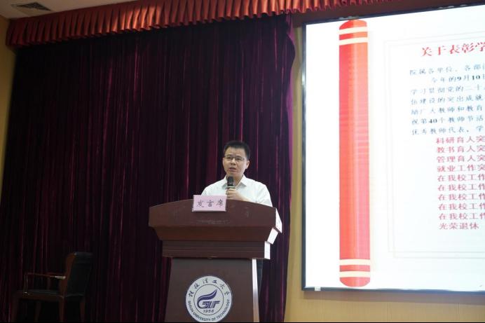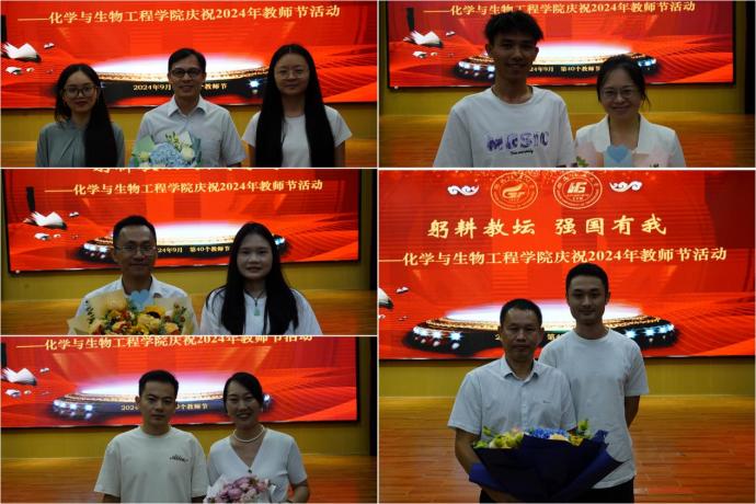 导航痕迹 当前位置: 首页 >> 新闻资讯 >> 学院新闻 >> 正文 躬耕教坛 强国有我--化学与生物工程学院庆祝2024年教师节活动圆满成功 作者:马文硕 发布日期:2024-09-12 浏览次数: 为充分展现高质量教师队伍建设的突出成就和广大教师立德树人、自信自强的精神风貌,大力营造尊师重教的良好氛围,化生学院以庆祝第40个教师节为契机,于9月11日上午在雁山校区图书馆报告厅开展以“躬耕教坛 强国有我”为主题的教师节庆祝活动。学校党委常委、副校长黎贞崇、学院党委书记彭代江、院长匡小军以及学院全体教师、学生代表等200余人参加了本次活动。 活动伊始,黎贞崇发表了热情洋溢的致辞,他饱含深情地分享了那些平凡而又动人的故事,每一个细节都透露出对教育事业的热爱与执着,深深感染了现场的每一名教职工。黎贞崇强调广大教职员工要以教育家为榜样,认真学习、深刻领悟,大力弘扬、自觉践行教育家精神,牢记为党育人、为国育才的初心使命,树立“躬耕教坛、强国有我”的志向和抱负,一是坚定理想信念,提高政治站位,领悟并传播教育家精神深邃的历史穿透力;二是坚持立德树人,廉洁从教,领悟并传播教育家精神优秀的榜样引领力;坚持严谨治学,宽厚育人,领悟并传播教育家精神深厚的育人智慧力;坚持厚德笃学、惟实励新,领悟并传播教育家精神深远的实践指引力。 随后,学院院长匡小军宣读了《关于学院表彰“从教三十年、二十五年、二十年、十五年、十年教师”及教书育人、科研育人、管理育人、就业工作突出贡献奖的决定》并进行了表彰活动。 会上,优秀教师代表王秀丽分享了从教多年来的心得感悟,号召全体教师践行为党育人、为国育才的初心使命,争做新时代的教育家,努力成为学生的引路人、知识的传授者和新技术的创新者。 活动最后,在场的学生们纷纷借助这个难得的机会,向他们敬爱的老师们进行了深情而真挚的告白,或手捧鲜花,或眼含泪光,用颤抖的声音诉说着老师们平日里那些默默无闻却又温暖人心的瞬间。他们讲述了老师们如何在知识的海洋里为他们引航,如何在成长的道路上给予他们鼓励与支持,又是如何在面对困难和挑战时,用坚定的信念和无私的奉献为他们树立了榜样。这场深情的告白,不仅是对老师们辛勤付出的肯定与感谢,更是师生之间深厚情感的交流与传递。 学校党委常委、副校长黎贞崇致辞 匡小军院长宣读表彰决定 各位领导为受到表彰的老师颁奖 教师代表王秀丽老师发言 学生向老师深情告白 合影留念 (一审:马文硕;二审: 李少华 ;三审: 彭代江 ) 上一条:学院赴桂林市人民医院开展研讨交流 下一条:学院召开教职工大会专题学习贯彻党的二十届三中全会精神