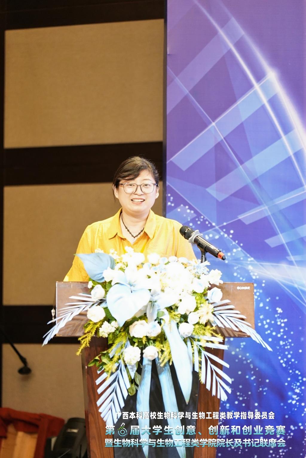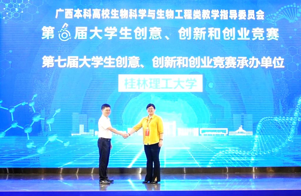 为推动生物学相关专业人才培养模式改革,促进高校间教学经验交流与协作,更好地培养具有创新实践能力的高水平生物工程人才,2024年11月16日,由广西本科高校生物科学与生物工程类教学指导委员会主办、广西科技大学承办、广西科技大学生物与化学工程学院协办的第六届大学生创意创新创业竞赛暨院长及书记联席会议在广西科技大学成功举办。beats365(中国区)-唯一官方网站副院长李霞教授、广西本科高校生物科学与生物工程类教学指导委员会委员李海云教授和专任教师汤兵率生物工程专业师生参加了本次会议及竞赛。 参赛师生合影 在联席会议上,包括教指委主任委员李有志教授在内的6位专家就“聚焦本科教学的生物科学与生物工程类院系建设、专业建设、课程思政建设”展开报告。李霞副院长在会上作了题为“生物工程创新人才培养改革与研究”的专题报告。本次会议在教指委的指导下给各成员单位搭建了一个交流与沟通的平台,对推进广西高校生物科学与生物工程类专业的发展具有重要意义。 李霞副院长在联席会上作专题报告 本届大学生创新创业竞赛分为培养皿创意竞赛、创新创意竞赛和创业竞赛路演三部分,来自广西区内16所高校约400人参与本次赛事。beats365(中国区)-唯一官方网站生物工程师生经过精心组织和准备,最终获得一等奖3项、二等奖9项、三等奖9项的好成绩,展现了我校师生扎实的专业基础、敏锐的创新意识和出色的实践能力,也体现了我院在培养高质量创新型人才方面的不懈努力。 颁奖现场 闭幕式上,广西本科高校生物科学与生物工程类教学指导委员会宣布了第七届竞赛由beats365(中国区)-唯一官方网站承办的决定。会上,我院化学与生物工程学院李霞副院长与广西科技大学生物与化学工程学院叶云副院长进行了庄重的赛事交接仪式。交接仪式的完成,标志着生物类教学与竞赛传统的传承,也开启了新一届赛事的新篇章。 叶云副院长(左)和李霞副院长(右)