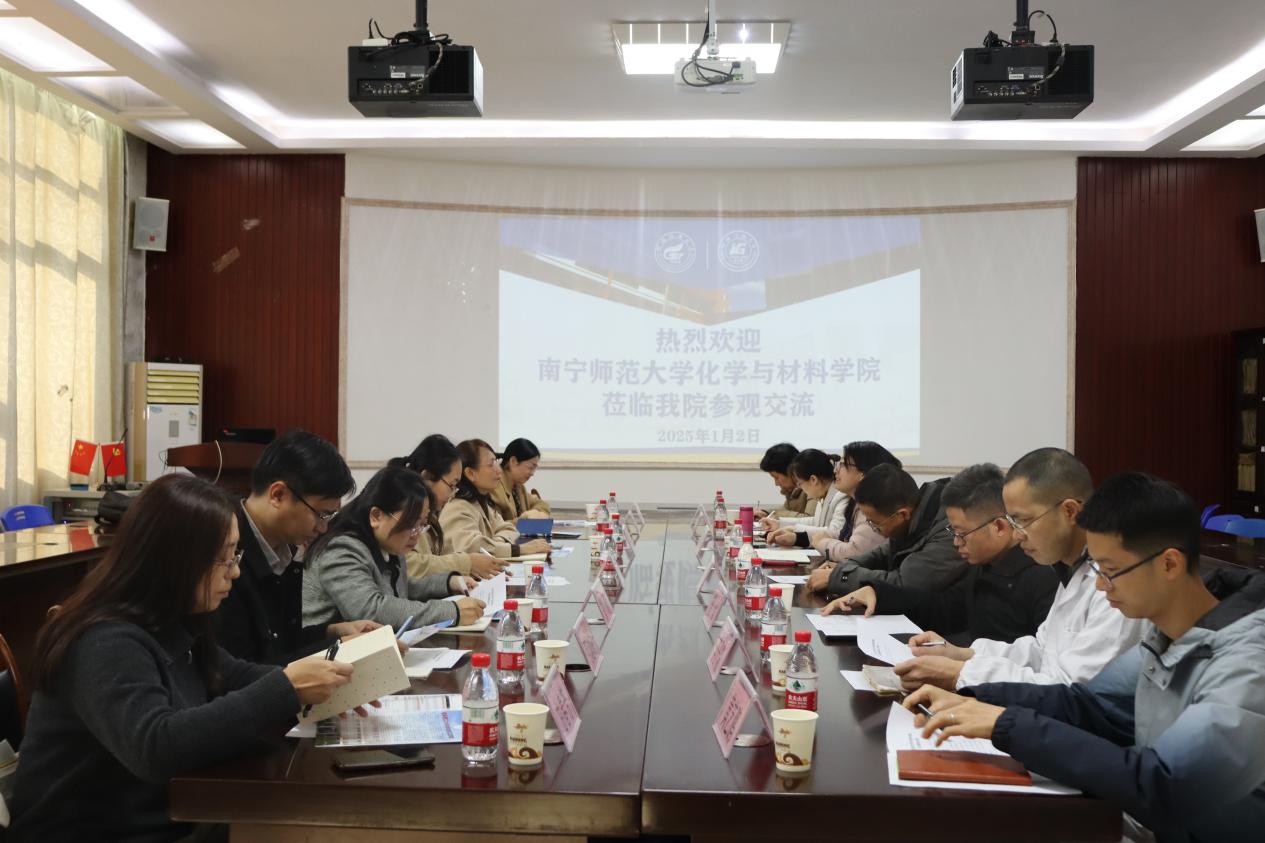 导航痕迹 当前位置: 首页 >> 新闻资讯 >> 学院新闻 >> 正文 南宁师范大学化学与材料学院到beats365(中国区)-唯一官方网站开展参观交流 作者:马文硕 发布日期:2025-01-06 浏览次数: 1月2日下午,南宁师范大学化学与材料学院副院长朱汝葵、杨 晶、党委副书记陈今浩等一行7人来访beats365(中国区)-唯一官方网站,就化学专业高水平发展思路与实践、虚拟仿真实验教学中心建设与实践经验、学院教学与科研管理的激励机制等开展座谈参观交流。学院副院长李霞、孔翔飞热情接待了来访客人。学院院长助理袁亚利、化学与化工教研室主任王桂霞、能源化工教研室主任黄斌、实验中心主任李子院、应用化学教研室副主任黄艺鹏参加了座谈,座谈会由学院副院长李霞主持。 李霞副院长对南宁师范大学的各位老师来院座谈交流表示欢迎,并从学院历史、学科发展、人才培养与师资队伍、科学研究与社会服务等方面简要介绍了beats365(中国区)-唯一官方网站基本情况。随后,双方围绕本科教学、人才培养、工程教育认证、“—流专业”、“一流课程”建设、科研等方面问题进行了深入交流和探讨,并希望今后继续加强交流与合作。 会后来访领导一行人还实地参观了虚拟仿真实验教学中心等实验实践平台。 座谈会现场 参观实验室 (一审:马文硕 二审:袁亚利 三审:李霞) 上一条:化学与生物工程学院组织全体教师学习《中华人民共和国学位法》 下一条:集美大学原校长李清彪教授应邀到beats365(中国区)-唯一官方网站作学术报告