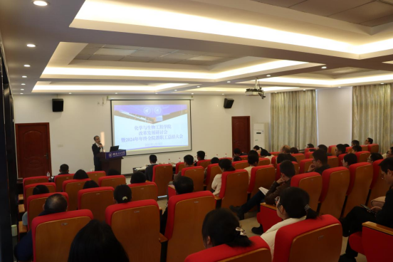 为全面贯彻落实学校党委三届九次全会精神,进一步集思广益、凝聚共识,谋划学院新时期改革发展新举措,化学与生物工程学院于1月18日在屏风校区协同创新中心会议室召开学院召开改革发展研讨会暨2024年年终全院教职工总结大会。学校党委常委、副校长黎贞崇莅临指导,学院全体教师参加了此次会议,会议由学院院长匡小军主持。