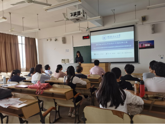 在答辩会上,由随机选出的27名应用化学专业大四学生进行了上台答辩。毕业生们围绕各自的毕业设计(论文)选题,从研究背景及意义、实验路线、可行性分析、阶段进展和进程安排等方面进行了汇报。各指导教师针对答辩过程和开题报告中存在的问题与学生进行了交流并提出了意见和建议。