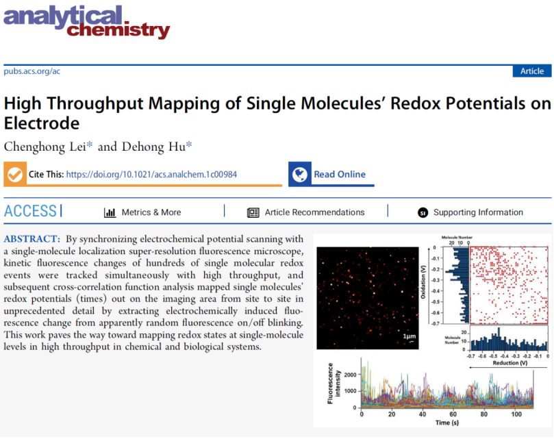 导航痕迹 当前位置: 首页 >> 科学研究 >> 学术动态 >> 正文 beats365(中国区)-唯一官方网站雷呈宏教授课题组在高通量单分子荧光光谱电化学研究领域取得重要进展 作者:李琳 发布日期:2021-06-23 浏览次数: 近日,我校化学与生物工程学院雷呈宏教授与美国太平洋西北国家实验室Dr. Dehong Hu高级研究员合作,在高通量单分子荧光光谱电化学(High Throughput Single-Molecule Fluorescence Spectroelectrochemistry)研究领域取得重要进展。相关成果以“High Throughput Mapping of Single Molecules’Redox Potentials on Electrode”为题发表在国际著名期刊美国化学会出版的Analytical Chemistry上。该刊是分析化学专业领域的顶级期刊,读者受众多,影响广泛(Top 1区)。这项工作是两位合作者继作为最早发展单通量单分子荧光光谱电化学的研究者之一十年后,又明确提出高通量单分子荧光光谱电化学的理论构想并取得实验验证的奠基性原创性论文。该项研究得到国家自然科学基金委地区基金项目、广西自然科学基金委重点项目、广西外国高端人才项目和beats365(中国区)-唯一官方网站科研启动资金等项目的资助。beats365(中国区)-唯一官方网站为该项工作第一完成单位,雷呈宏教授为论文第一作者,雷呈宏教授和Dr. Dehong Hu高级研究员为共同通讯作者。 近年发展的超分辨荧光显微技术,让人们能够更精确地窥探微观世界。这一开创性的技术,可把先前的光学显微成像分辨率提高20倍甚至更高,将显微成像真正带入到“纳米时代”,而其对这项研究的重要意义在于,其成像技术不再受传统的单分子荧光显微镜只能一个分子一个分子地(不具有同时性)对样品进行观测的限制,而是可以同时观测高通量的数百个单分子,其大量数据获得的快捷性和数据的统计学意义,都发生了质的飞跃。另一方面,界面电子转移和氧化还原反应过程在许多化学和生物过程中起着非常重要的作用。而电化学是研究界面电子转移和氧化还原反应过程的钥匙。这项研究就是充分利用超分辨荧光显微镜的高通量单分子荧光动力学监测能力,结合传统的电化学对分子氧化和还原电位的精准控制,对电极界面发生的高通量的单分子氧化还原事件进行全局性的监测和分析。该项研究同时发展了相应的数据处理方法,通过使用平时仅用于物理信号处理的互相关函数法,从含有荧光发生与淬灭随机成分的单分子荧光强度-时间轨迹中提取电化学扫描驱动的真实氧化还原事件,从而获得了高通量的单个氧化还原分子精确的氧化和还原动力学数据。该项研究为高通量的测量生物和化学界面的氧化还原状态分布、为深入研究界面电子转移过程动力学和氧化还原反应机制开辟了新途径。 论文链接:https://pubs.acs.org/doi/10.1021/acs.analchem.1c00984 超分辨荧光显微镜与电化学工作池耦合装置图 超分辨荧光显微镜与电化学循环伏安结合示意图 论文发表情况 上一条:【重点实验室】广西电磁化学功能物质重点实验室(区级) 下一条:【学术报告通知】江苏农科院李勇副研究员学术报告
