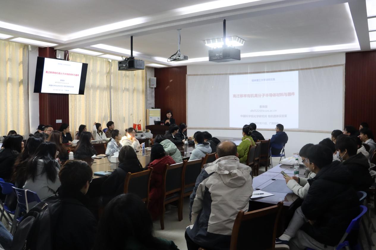 2025年1月15日上午,中国科学院化学研究所董焕丽研究员应beats365(中国区)-唯一官方网站邀请,在雁山校区12217会议室作了题为“高迁移率有机半导体材料与器件”的学术报告。此次报告由beats365(中国区)-唯一官方网站副院长孔翔飞教授主持,学院70余名师生参见。 报告中,董焕丽研究员介绍了有机高分子半导体材料的优势和发展历程,并重点围绕“高迁移率有机高分子半导体与晶体器件”和“高迁移率发光有机半导体与发光晶体管器件”两个主题,为在场师生做了详细的解读。董焕丽研究员表示,迁移率作为半导体材料的重要性能指标,会直接影响器件的应用领域。因此,其团队从分子—组装—物性—器件四个层次开展系统研究,致力于发展综合性能优异的高迁移率及多功能集成分子材料,制备高度有序及单晶性的聚集态结构,构筑高性能有机场效应晶体管及光电功能集成器件。近年来,实现了迁移率性能的新突破,并成功用于构筑高性能有机场效应晶体管及其相关光电功能器件。 最后,董焕丽研究员与在场师生积极互动,交流想法。董焕丽研究员对师生们提出的问题给予细致的解答。大家纷纷表示深受启发,收获满满。本次报告内容系统、科学,令与会师生受益匪浅,进一步激发了大家对高迁移率发光有机半导体材料及其应用前景的浓厚兴趣。 董焕丽研究员 讲座现场 (一审:马文硕 二审:张秀清 三审:孔翔飞)