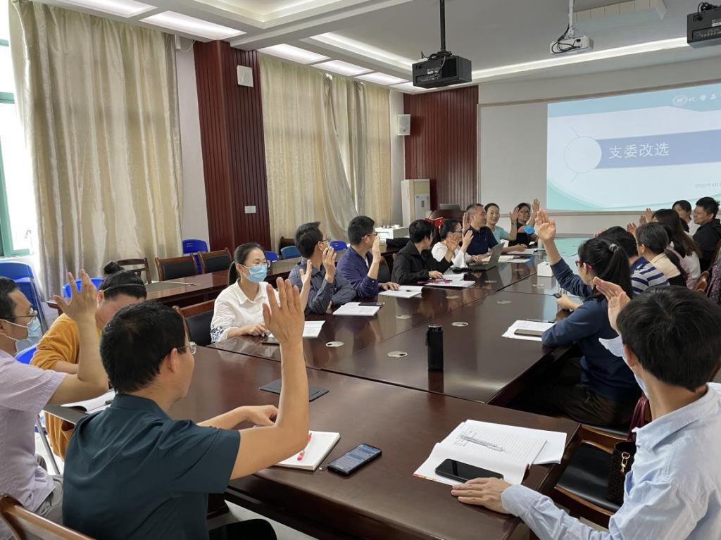 导航痕迹 当前位置: 首页 >> 党建工作 >> 新时代高校党建“双创”工作专栏 >> 正文 【样板支部】化学与化工教工党支部召开党员大会补选支部委员 作者:冯艳艳 发布日期:2022-05-04 浏览次数: 为充分发挥支部的战斗堡垒作用,使党支部不断注入“新鲜血液”,更好地服务群众、凝聚人心,化学与化工教工党支部于4月29日召开党员大会,进行新一届支部宣传委员的补选工作。会议由支部书记何方主持,支部全体在校教工党员参加。 大会严格按照《中国共产党章程》和《中国共产党基层组织选举工作条例》的规定和要求,选举过程严格遵守公平、公开、公正的原则,以投票方式选举产生了新一届支部宣传委员。 党员大会后,支部委员会召开了支委会议。会议强调支委将以高度负责的态度和锐意进取的精神,进一步规范“三会一课”、主题党日活动等,提高党建工作水平,全力打造“最强党支部”,为支部教工教学科研工作的开展提供强大的精神动力和思想保障。 会议现场 上一条:【样板支部】化学与化工教工党支部和学生党支部联合开展主题党日活动 下一条:【样板支部】化学与化工教工党支部举行观影《永不消逝的电波》主题党日活动