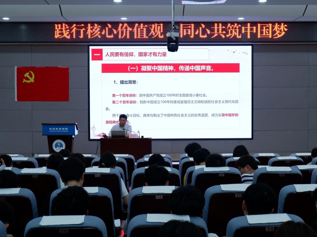 导航痕迹 当前位置: 首页 >> 党建工作 >> 新时代高校党建“双创”工作专栏 >> 正文 【预备党员培训班】第二十五期预备党员培训班第一讲——践行社会主义核心价值观,同心共筑中国梦 作者:熊艳 陈钰瑶 发布日期:2023-05-30 浏览次数: 为使预备党员认识到社会主义核心价值观与中国梦的深刻内涵和内在联系,明确社会主义核心价值观是凝聚人心、汇聚民力的强大力量,5月29日中午,化学与生物工程学院党委书记彭代江在地球与科学学院报告厅为预备党员讲授主题为《践行社会主义核心价值观,同心共筑中国梦》的党课。 此次党课彭代江书记从三方面进行授课,一是人民要有信仰,国家才有力量。彭代江书记分别从国家、社会和公民个人层面对社会主义核心价值观进行了生动阐释和深入论证,并告诫我们要树牢价值标杆,凝聚发展力量。二是观念内化于心,思想融入灵魂。社会主义核心价值观与中国梦具有同源性、同向性和同质性,二者统一于中国特色社会主义的伟大实践。三是精神外化于行,梦想落地生根。彭代江书记指出我们青年学生作为培育和践行社会主义核心价值观、共建共享中国梦的中坚力量和生力军,要提高思想站位、深化政治认同和明确奋斗目标。 通过此次党课的学习,预备党员纷纷表示今后会成为社会主义核心价值观的坚定信仰者、积极传播者和模范践行者,为实现中国梦贡献自己的力量。 党课现场 上一条:【预备党员培训班】第二十五期预备党员培训班第二讲——坚持党性锻炼,永葆共产党员的本色 下一条:【标杆院系】学院开展全面从严治党及党风廉政建设专题党课