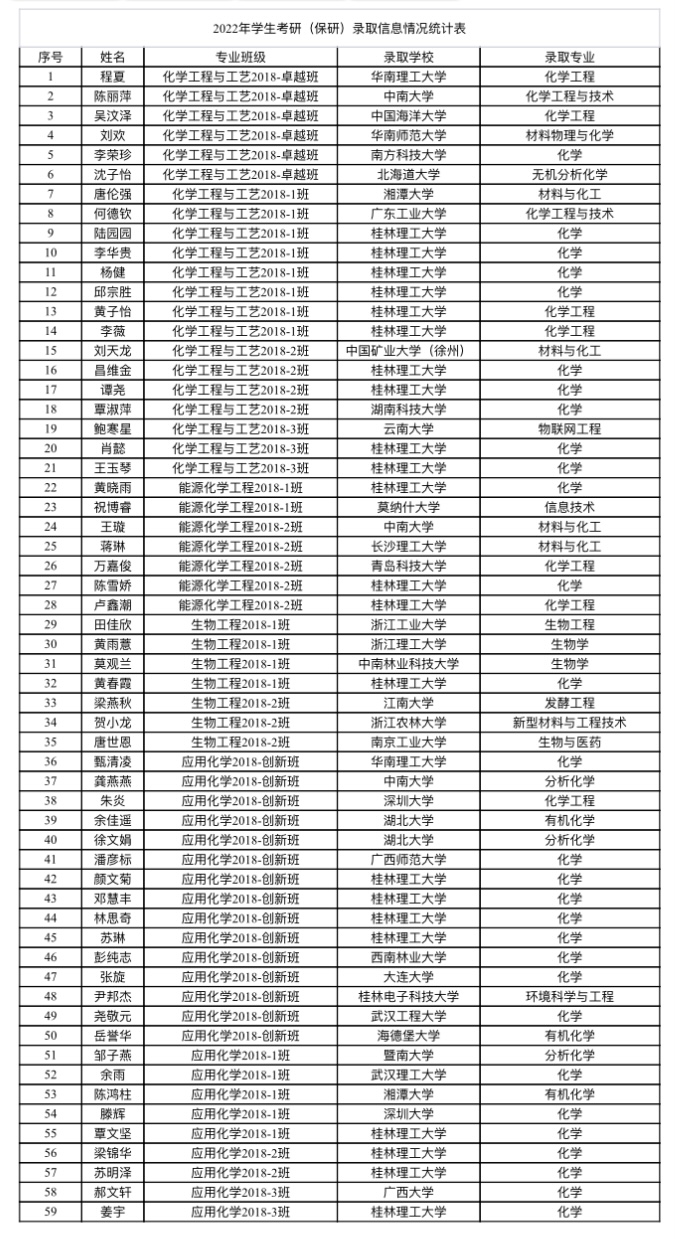 导航痕迹 当前位置: 首页 >> 学生工作 >> 学生风采 >> 正文 化学与生物工程学院2022年本科学生考研录取名单 作者:李学来 发布日期:2022-06-25 浏览次数: 上一条:学院集中开展在校学生防范电信网络诈骗宣传教育 下一条:化学与生物工程学院2021年本科学生考研录取名单