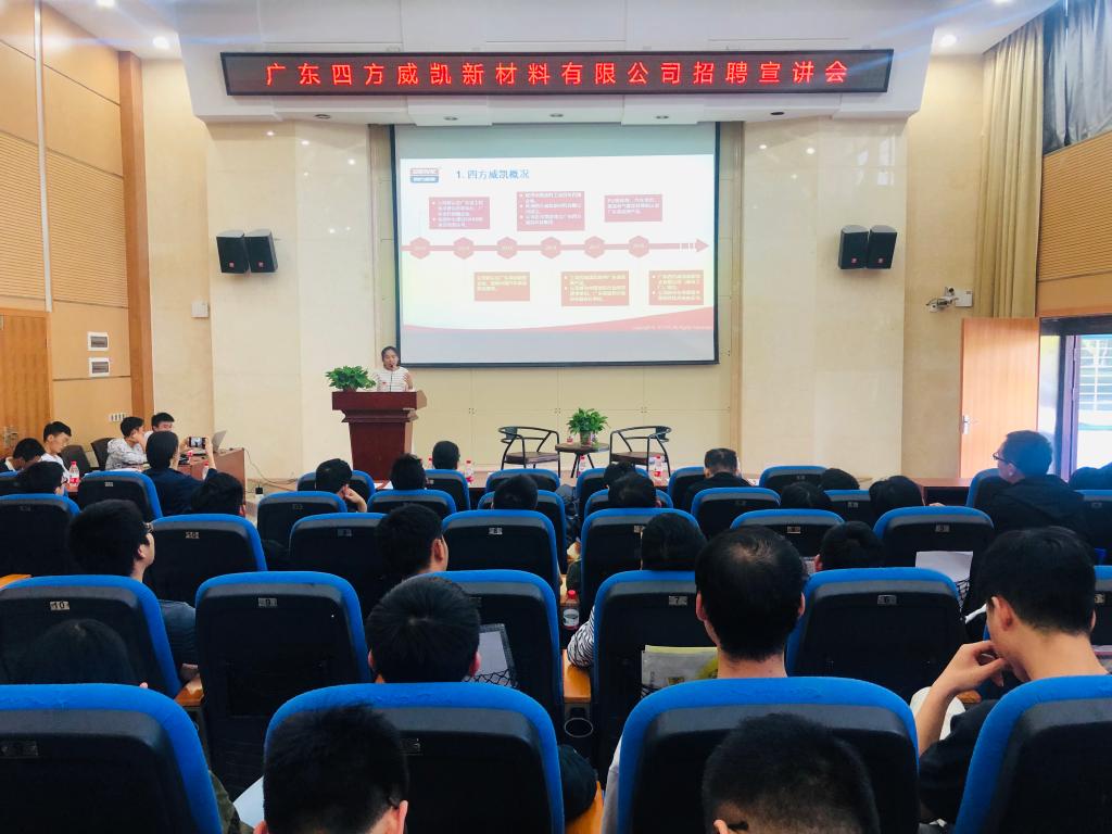 导航痕迹 当前位置: 首页 >> 招生就业 >> 招聘信息 >> 正文 广东四方威凯新材料有限公司来beats365(中国区)-唯一官方网站开展专场招聘宣讲会 作者:梁精华 发布日期:2019-11-02 浏览次数: 11月1日,广东四方威凯新材料有限公司来到beats365(中国区)-唯一官方网站开展专场宣讲会。宣讲会在我校雁山校区12217多功能厅召开,beats365(中国区)-唯一官方网站2016级、2017级化学工程与工艺、应用化学、分析化学等专业部分本科生参加宣讲会。 宣讲会现场,企业代表郭书记首先从公司概况、发展理念、人员培训、薪酬福利、招聘流程等方面做了详细介绍,然后针对同学们普遍关心的问题进行了一一解答。郭书记表示,希望同学们在求真务实中寻找到人生成长的方向,在企业发展中做到自我升华,四方威凯欢迎每一位有梦想的学生。宣讲会现场有条不紊,反响热烈。 据悉,四方威凯创建于1998年,是一家专业从事汽车及其配件涂料、摩托车及其发动机涂料、电动车及光固化涂料、轨道交通及工程机械装备涂料、钢结构及铝幕墙涂料、厨具功能涂料等高档工业涂料研发、生产、销售于一体的国家级高新技术企业。 广东四方威凯新材料有限公司招聘宣讲会现场 上一条:诺德投资股份有限公司来beats365(中国区)-唯一官方网站开展专场宣讲会 下一条:江门市优巨新材料有限公司来beats365(中国区)-唯一官方网站开展专场招聘宣讲会