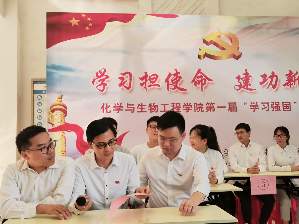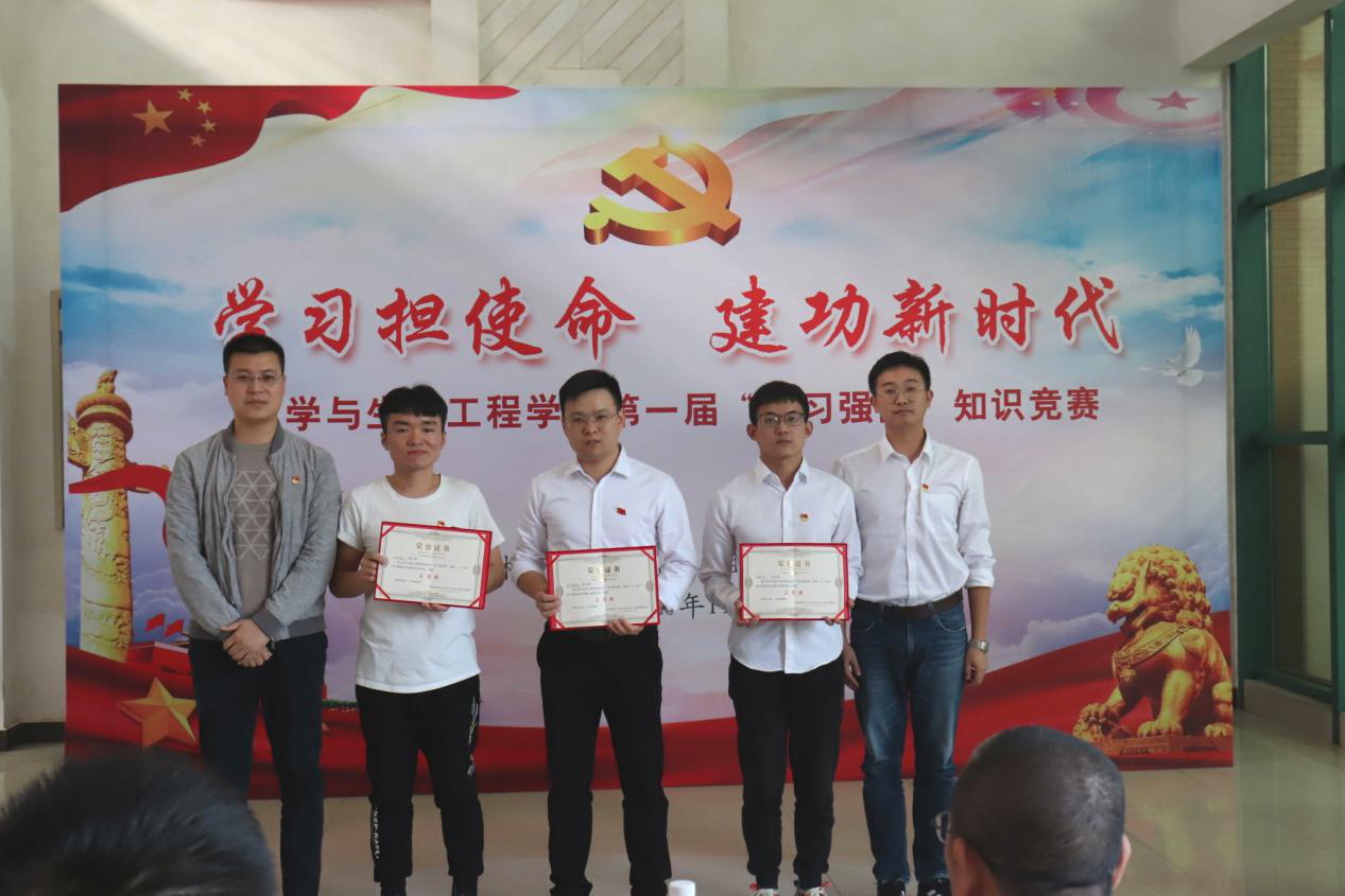 此次活动在主持人的带领下有序进行,在“去伪存真”环节,各党支部选手平分秋色,精神饱满,认真作答;随着“学无止境”环节题目难度的加深,各党支部代表队间的竞争显得愈发激烈;“共渡难关”环节将比赛推向了高潮,比赛进入白热化状态,各队选手齐心协力、快速思考、比记忆、拼知识,不错失任何一个得分的机会。经过最后一个环节“巅峰对决”,本科生第二党支部最终脱颖而出摘得桂冠,本科生第三党支部和本科生第四党支部并列获得亚军,应用化学教工党支部、研究生第二党支部和本科生第一支部获得季军。本次“学习强国”知识竞赛以此落下帷幕。