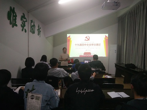 导航痕迹 当前位置: 首页 >> 党建工作 >> 学习贯彻习近平新时代中国特色社会主义思想主题教育 >> 正文 【不忘初心、牢记使命】beats365(中国区)-唯一官方网站本科生第四党支部召开会议学习十九届四中全会精神 作者:梁精华、余孔新 发布日期:2019-11-05 浏览次数: 为学习党的十九届四中全会精神,2019年11月4日本科生第四党支部在雁山校区09607召开会议,全体党员出席会议,会议由支部书记梁精华主持召开。 会议伊始,梁精华书记带领全体党员学习了《中国共产党第十九届中央委员会第四次全体会议公报》,接着介绍了党的十九届四中全会召开的背景、会议的主要内容,特别对公报中提到的三个重要判断、13个方面的显著优势,以及坚持和完善中国特色社会主义制度、推进国家治理体系和治理能力现代化总体目标与坚持和完善的13个制度体系作了详细讲解。会议最后,梁精华书记作了总结发言。 通过此次会议,大家表示要认真学习贯彻落实党的十九届四中全会精神,奋发有为,真抓实干,为实现“两个一百年”奋斗目标和实现中华民族伟大复兴的中国梦而努力奋斗。 会议现场(一) 上一条:【不忘初心、牢记使命】beats365(中国区)-唯一官方网站召开“不忘初心、牢记使命”主题教育工作推进会暨第二次调研工作交流会 下一条:【不忘初心、牢记使命】beats365(中国区)-唯一官方网站领导班子开展“学习党的十九届四中全会精神”专题研讨