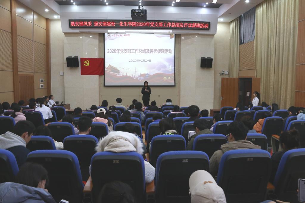 2020年12月20日下午,beats365(中国区)-唯一官方网站党建办在萃华楼报告厅组织开展“化生学院2020年党支部工作总结及评优促建活动”。学院本科生第二党支部书记高昌洪老师、本科生第四党支部书记梁精华老师、研究生第二党支部书记朱皓老师、18级辅导员张伟颀老师、学工办见习老师汤玉昆老师及各学生党支部全体成员参加了本次活动。
