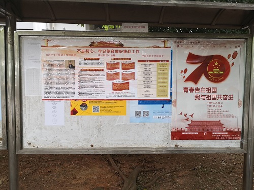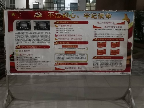 按照学校关于“不忘初心、牢记使命”主题教育宣传工作的相关要求,结合学院实际,充分利用线上线下的资源对学院相关工作进行报道。学院充分发掘身边的优秀党员和先进榜样,对2019年自治区优秀教师获得者化生学院院长匡小军和学院2019年国家奖学金获得者学生党员熊甲进行了人物报道,鼓励广大师生党员对标先进找差距,不忘初心继续前进。学院根据主题教育工作方案,设计制作了“不忘初心、牢记使命”宣传展板、“不忘初心、牢记使命做好统战工作”统战知识宣传板、 “化生学院党员先锋岗及党员责任区”宣传板。并通过学院电子显示屏滚动播放主题教育的相关工作要点,通过各方面的宣传工作在学院营造了良好的工作氛围。