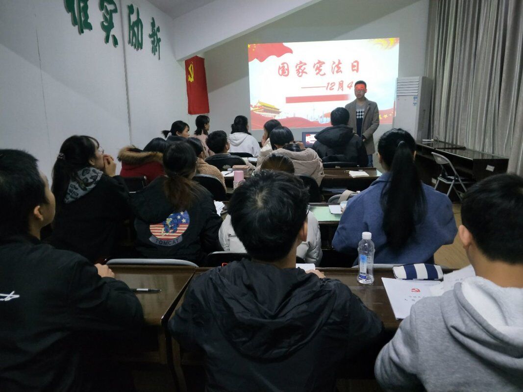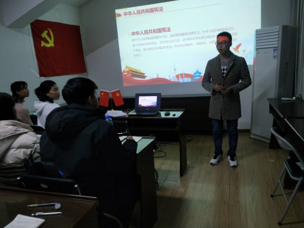 为加强法制宣传教育,全面推进依法治国,12月5日晚,本科生第四党支部全体党员于雁山校区09607会议室参加了“宪法晨读”活动,本次活动由支部副书记贾玉虎同志主持。